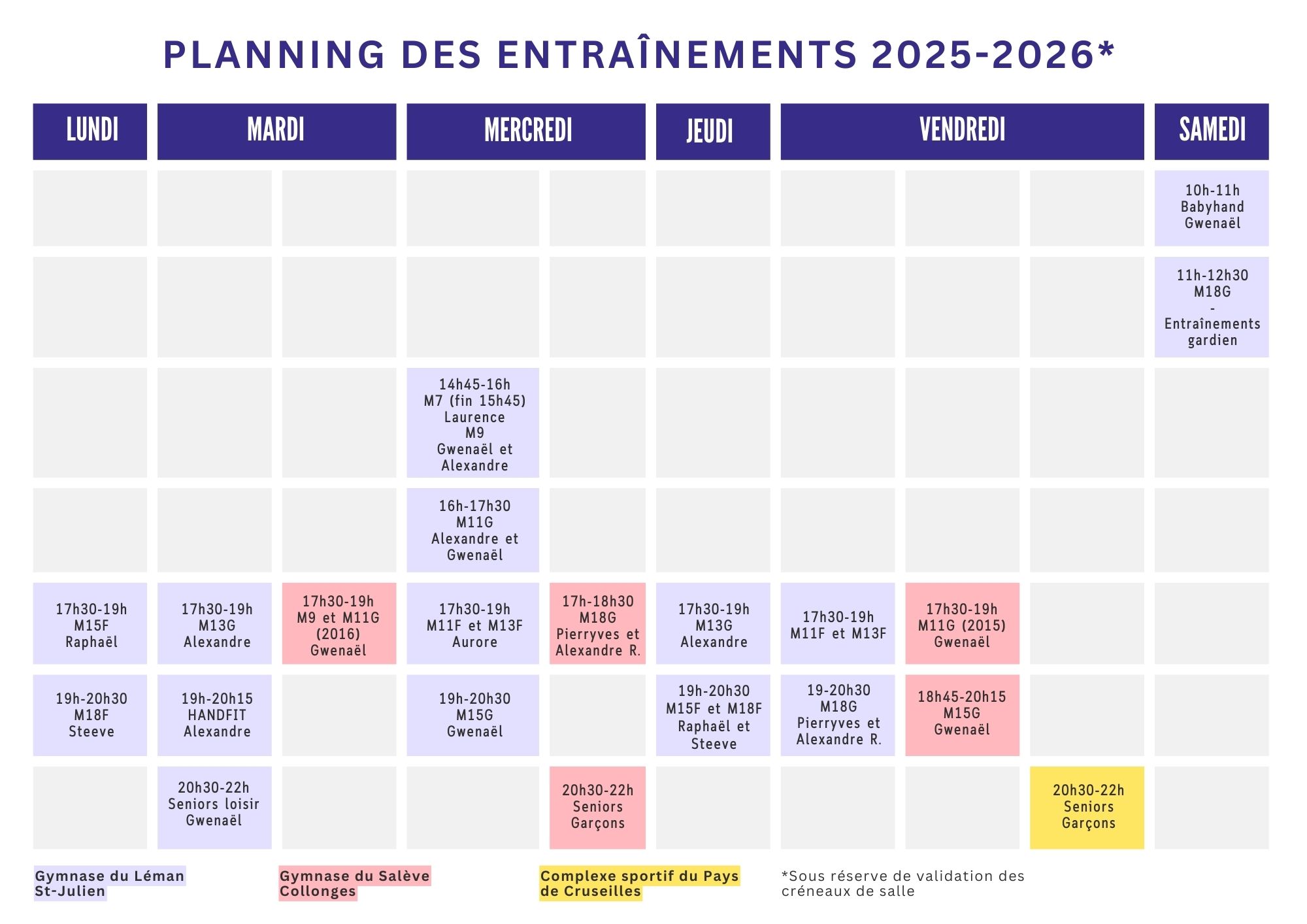 Projet de planning des entraînements 2025-2026